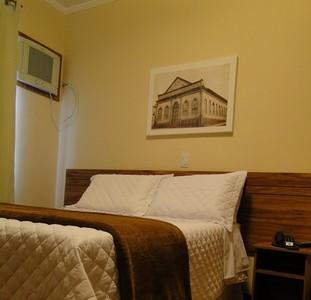 Cama box casal, ar refrigerado, frigobar, secador de cabelo, TV LCD